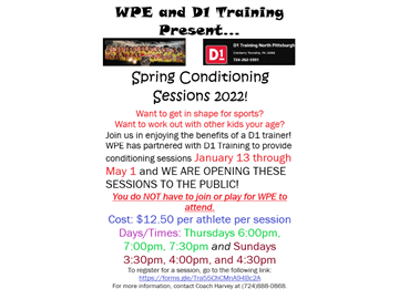 D1 Training and WPE have joined to offer Spring 2022 Conditioning Sessions!